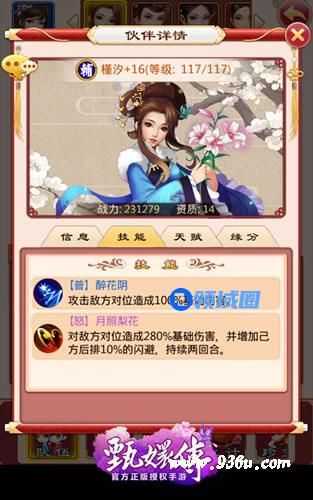 在《甄嬛传》手游中,槿汐也是一张14资质的橙卡。槿汐的怒技“月照梨花”能够对敌方对位造成巨大伤害,同时,还将增加己方后排的闪避。在对战中, 后排往往是队伍主力输出的位置。对于这种伤害爆棚,却脆弱异常的伙伴,单纯增加防御值远不如提高闪避实用。一个关键技能触发了闪避,往往能够扭转战局。同 时,槿汐自身还拥有高闪避,保证其生存率。