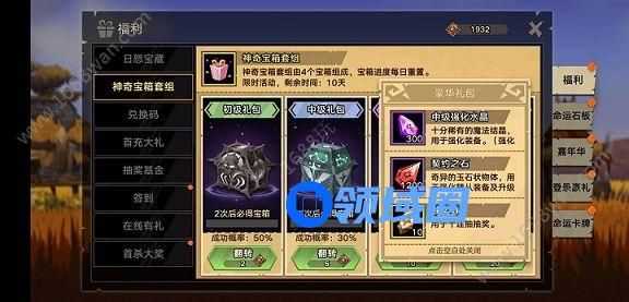 9、新增神奇宝箱套组,开启时间为:开服后第11天至开服后第24天