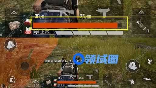 健康值下方的长条即为信号值,当玩家处于信号区外时,信号值就会被缓慢的扣除,当信号值归零后,玩家将会倒地或是被淘汰。
