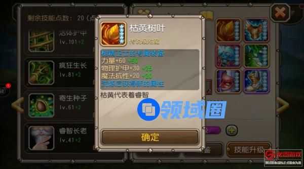专属觉醒装备“枯黄树叶”,树精卫士的力量、物理护甲和魔法抗性得到大幅度提升。