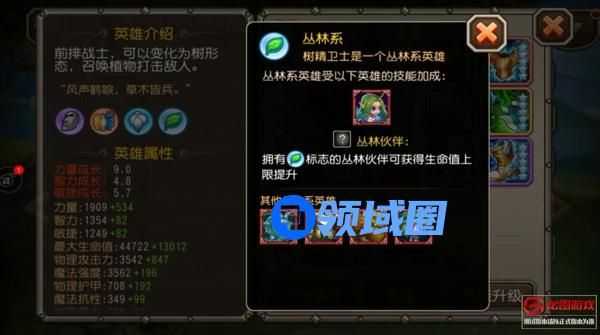 树精卫士是一个丛林系英雄,拥有丛林标志的丛林伙伴可获得生命值上限提升,除树精卫士外,其他从林系英雄有老鹿、先知和小鹿。