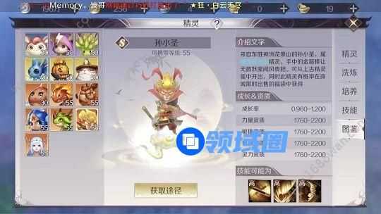 特别说一下,近日新增了一个S级的物理攻击型精灵——孙小圣。孙小圣的技能有概率降低目标的攻击速度和施法速度,最与众不同的地方在于第三个主动技能,可以召唤一个身外化身,对敌方造成物理伤害,以及减速效果,5秒钟后化身消失,对周围目标都会造成眩晕效果。