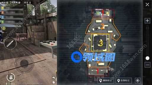 接着再从地图的地形说起,我们可以看到,该地图是近似对称的多边形。区域1的位置是红蓝两队登陆游戏时的所在地,我们可以称之为初始点,初始点分别为小木屋和围墙内。如果在游戏里被淘汰,玩家会重返初始点。区域2看似不规则,仔细分析不难发现,红队往左边走和蓝队往右边走时的地形是一致的,该理论反推成立。甚至面为中心地带区域3的仓库,无论外部结构还是内部构造,从红蓝两队的视角出发,几乎都是相同的。