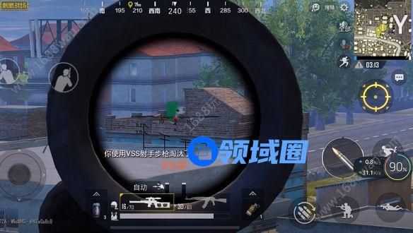 在游戏前中期,当我们拾取到VSS射手步枪狙击后,就可以开始我们的独特玩法。寻找一处仅有一层的房屋进入做掩体,在窗户旁蹲下,开镜瞄准。因为VSS射手步枪自带的四倍镜其实比我们常规拾取的四倍镜要厉害的多,它的镜面有一个参照系统,上面的四根竖线分别代表从100-400米的可视距离,每条竖线上的两条斜线用于测量站立高度和蹲伏高度,镜面系统上方还有三个三角,从上至下表示攻击100、200、300米处时可以瞄准的准星。利用这个镜面系统,我们大致算出对手距离自己有多远,然后选择合适的准星攻击对手。但因为VSS射手步枪只能攻击300米之内的对手,如果超出300米,则放弃攻击。凭借VSS射手步枪狙击枪的这个优势,我们可在游戏前中期淘汰数名对手,且很难被其他对手发现。