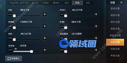 因为手枪武器在实战中发挥的效果一般,除了落地前期可以充当自卫武器之外,游戏中后期基本用不到手枪,所以小编建议:将手枪子弹的拾取上限调至0(仅留信号枪默认不变),弩箭的拾取上限也调至0,为的是在后续舔包过程中节省背包空间。