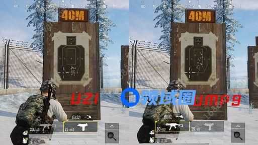 UZI共有枪口、弹夹和枪托三类枪械配件。其中,枪托配件只有一个,并且为UZI枪械专享配件,可以使后坐力回复更快并减小武器晃动幅度。通过上方的对比图,我们可以看到是否装配枪托对于枪械着弹点的分布有着很明显的差异。我们由此可以得出,UZI的枪托可以增强枪械的稳定性,减小后坐力,是该枪的核心配件。较快的射速带来子弹消耗的加剧,UZI默认的弹匣容量为25,扩容弹匣的额外增益为10发。所以,冲锋枪的快速扩容弹匣配件对于UZI而言也显得十分关键。
