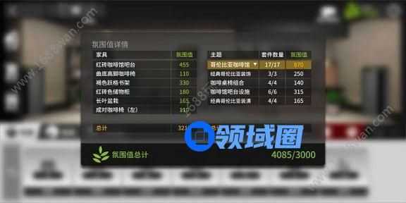 3785+540=4325。后面放了5个叠叠高之后还空余12*4的地面格子,可以放3个生态展览柜,225*3=675,氛围度正好达到5000。