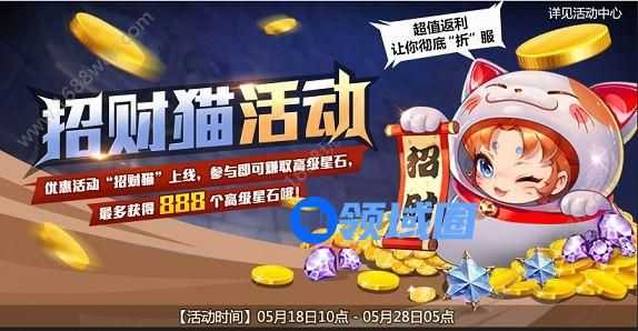 圣斗士星矢手游将在5月18日10点开启“招财猫”活动,活动截止到5月28日5:00,活动门槛低,玩家参与活动即可极高的返利,一起来看看这个活动吧。
