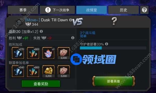 战争评定积分还会决定联盟的品阶,品阶越高盟战结束之后获得的奖励也越多,开的战斗组越多获得的品阶奖励也多。