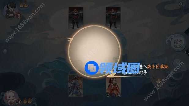 指派式神进入战斗区后即会自动作战:如果有对方的式神,则自动单挑;如果对方没有式神,则攻击对方牌手。