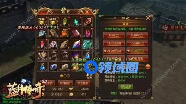 在5倍攻速、10倍爆率的加持下,玩家可以快速清理BOSS,获取大量装备与材料。多余的装备可以通过装备回收,获取经验,提高升级速度。如果大家稳定挂机的情况下,一般一天250级是可以的。想要达到一天300级,还需要再加点料!