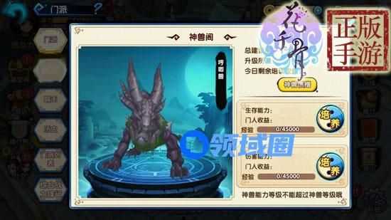 神兽阁也是门派建设中必不可少的。门派哼唧兽需要门派掌门才可以升级,门派建设等级越高,对应的神兽阁等级也能越高。哼唧兽的能力分为生存能力和伤害能 力,能力等级不能超过神兽等级。培养哼唧兽要用灵宠的灵魄,用于培养哼唧兽的灵魄品质越高,神兽阁的反馈收益奖励也就越丰厚。