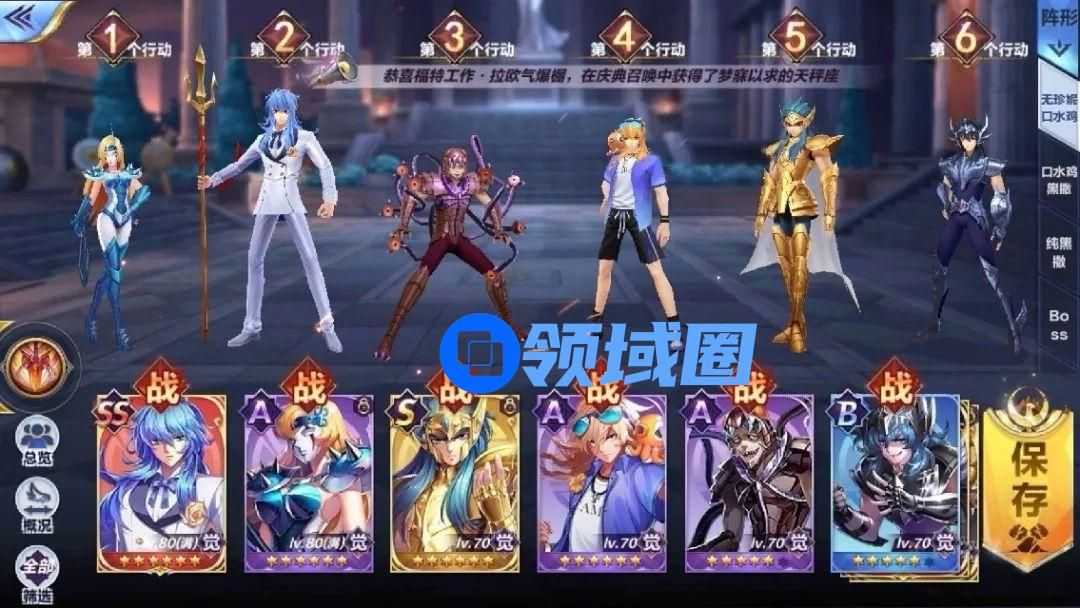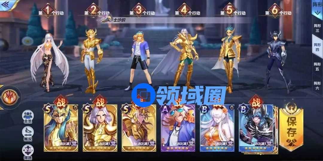 珍妮、莱密、冰河、卡妙、暗黑天鹅、海皇(可替换为神沙加、哈迪斯、神圣衣一辉)