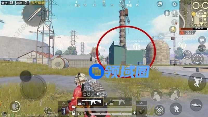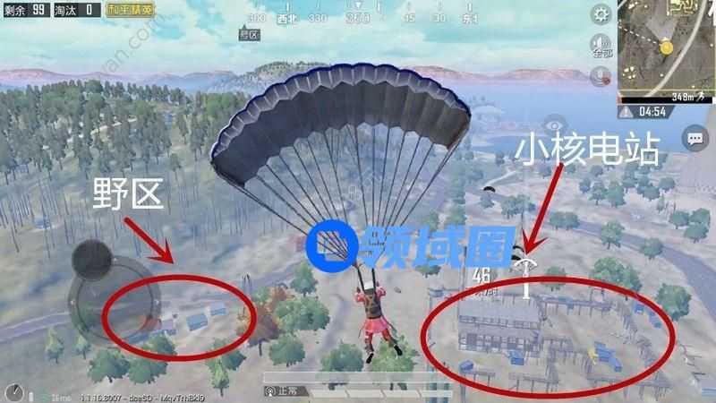 核电站分为小核电站与大核电站,一般小编建议玩家们选择小核电站降落,因为小核电站物资比起大核电站有过之而无不及,且物资分布更为集中。但小核电站也许会出现有其他的玩家更快落地的情况,如下图所示,小编建议大家转向左侧的野区搜寻物资。