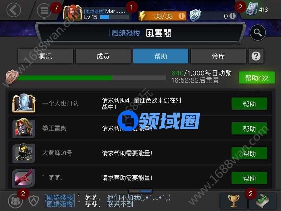 在联盟中最初接触的一个功能可能就是“请求支援”了,在你进行副本活动时如果没有体力了,除了使用体力药剂,还可以点击请求支援向联盟好友索要体力——不过放心,索要和赠送都是免费的,而赠送体力还能获得功勋点奖励,所以看到有联盟好友请求支援,不用犹豫,帮助就是了!