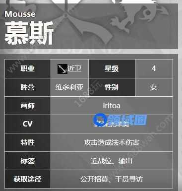 慕斯的属性和其他的挡1近卫比起来更加均衡,攻击力稍低而防御更高,而且有魔抗,使得慕斯自身的血的质量比较高,虽然输出没有那么暴力但是因为是魔法伤害,所以相对稳定。