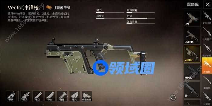 Vector还有一个别的冲锋枪没有的优点就是可以携带大量的配件,配件装在背包里是非常的浪费容量的,一般的玩家还是喜欢一把步枪一把狙击枪的配置,Vector在前期可以帮你携带新版本很火的战术枪托,还有握把,不仅战斗力出色辅助功能也是首屈一指的。