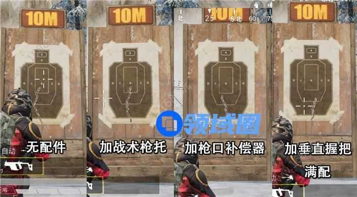 下面让我们一起来看看Vector的配件装配对于弹道的影响,从上图我们可以发现在没有任何配件的情况下Vector的弹道水平方向比较不稳定,垂直方向后坐力也是比较大的。在装备战术枪托以后对于水平方向的有着很大的稳定作用,在装配枪口补偿器以后对于垂直方向的后坐力就有明显的优化了。因为Vector只能装备垂直握把,轻型握把,半截式握把和激光瞄准器,所以装备垂直握把是最好的选择,在装备垂直握把以后垂直后坐力又有了很大程度的降低。通过这张图我们不难发现Vector还是比较吃配件的,满配和没有配件的弹道差距是比较大的。