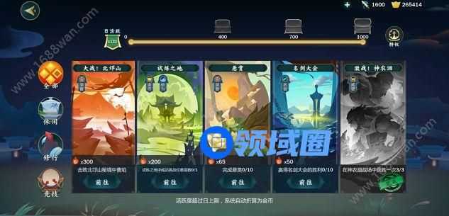 第六则是每天活跃度尽量做满,可获得金币和侠义值