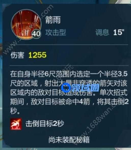 箭雨作为一个对空技能,伤害很低,频率中等,命中率低,所以选择断篇提高箭雨的控制效果显得尤为重要,可以击落空中目标。