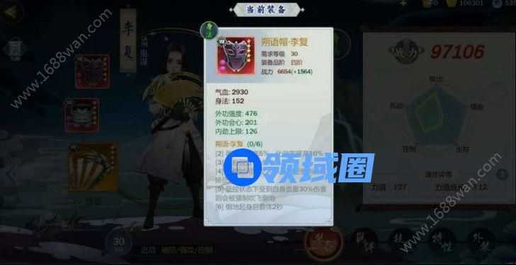 李复羁绊包含了五大弟子和秋叶青分别为李复提升了御劲、化劲、外功减伤、血量值、内劲回复、会心、治疗效果等加成,在出装方面,首先会心会效牌子要拥有,