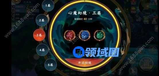 心魔幻境分5层难度,每层进入均需要消耗心魔残页,第一层2张,每提升一层消耗增加2张。第一层装备要求三万分每层增加一万装分。层数越高,掉落装备属性越好,第三层开始会掉落特效装备。boss掉落宝箱要在三个boss击杀结束后再开启,提前打开会立即结束挑战。