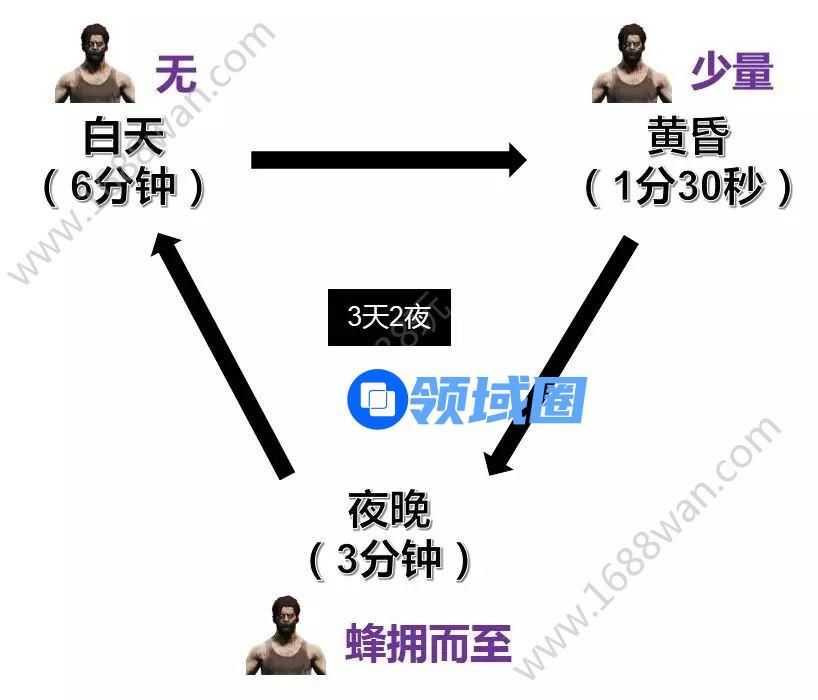 在暗夜危机中分为昼夜天气,特种兵们一共需要挺过3天2夜。而天气是会按照“白天(6分钟)→黄昏(1分30秒)→黑夜(3分钟)→白天→黄昏→黑夜→白天”这样的形式循环进行。