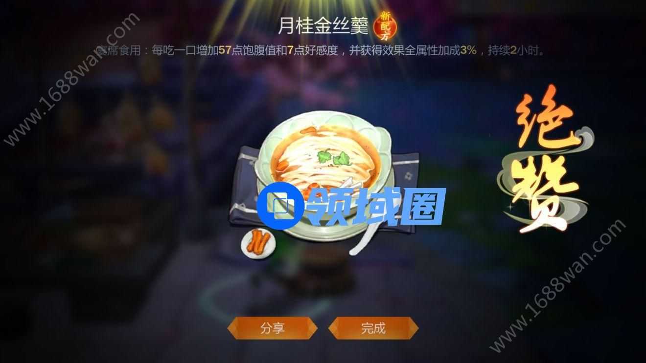 花费:30饱食度,采集材料井水、桂花、鱼翅