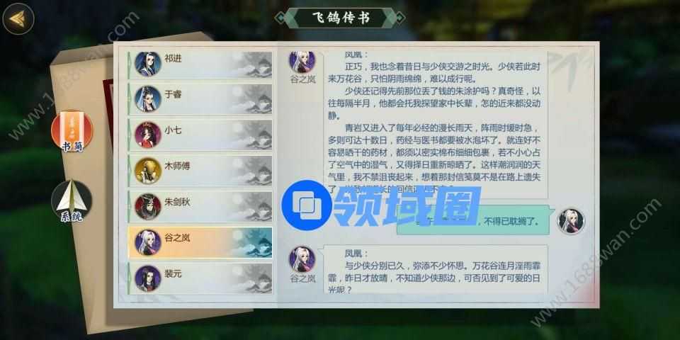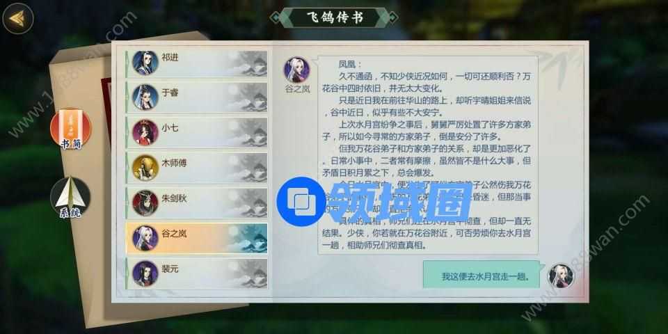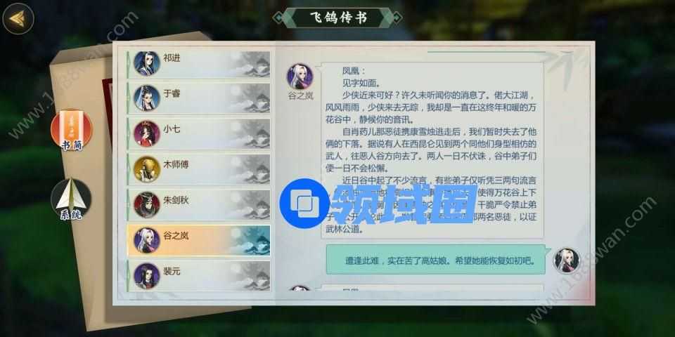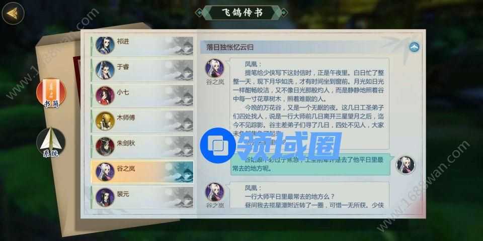 剑网3指尖江湖玩家在清完万化的任务后再去做谷之岚的羁绊任务即可解锁谷之岚这个角色,关于谷之岚的羁绊任务和回信选择,跟着小编一起来看看吧。