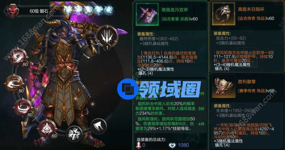 其次血污套在击中敌人后有20%概率制造额外伤害,无论是搭配永冬/狂躁,【旋风斩】在伤害上更为优胜。