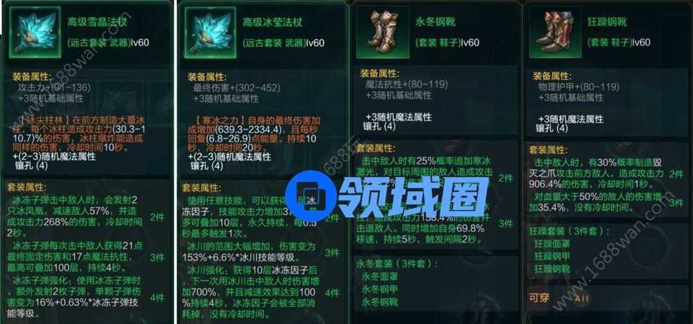 冰莹套只要4件就能激活全部套装属性,所以另外2件可以搭配永冬或狂躁(前期可以用爆裂套过渡)。