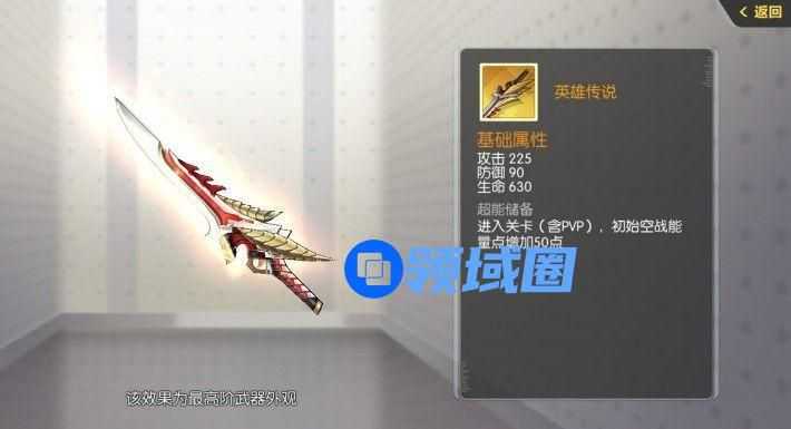 在推图过程中这把武器的特效也是非常关键,空战技能可以把BOSS打到空中进行连击的,所以再推图打BOSS时候这把武器非常好用。