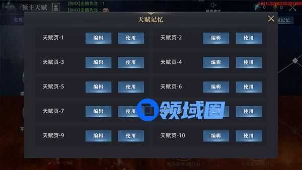 领主在天赋页面点击天赋记忆,即可看到不同的天赋页,点击编辑可以预设不同方向的天赋页,并进行储存。