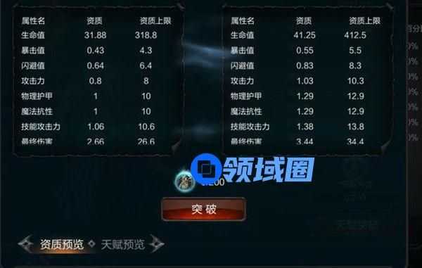 资质可以投入资源提升,但是能够呈现出的资质上限则会与突破的进度有关,因此建议先满突破再升资质。