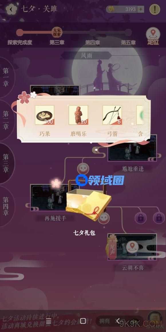 第三章过了可以消耗100阅历大宋探索一次,山洞里面有大量巧果,但是好像点到某一个巧果当前界面巧果会消失,我点太快了没注意,好像是少了几个巧果。题目全部答对的话有17个磨和乐,如果不小心答错了可以退出重来