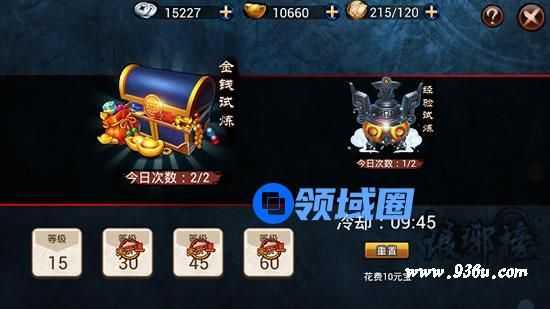 不管是金钱试炼还是经验试炼,都分为4个等级,玩家需要到达指定的等级,才能开启对应的试炼。等级越高,试炼获得的金钱与经验也就越高哦。