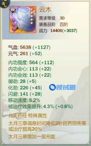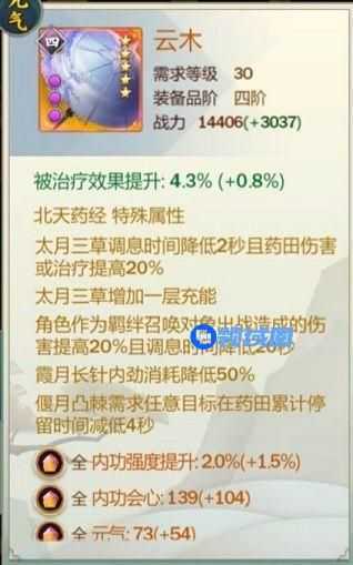 1:太月三草调息时间降低2秒且药田伤害或治疗提高20%