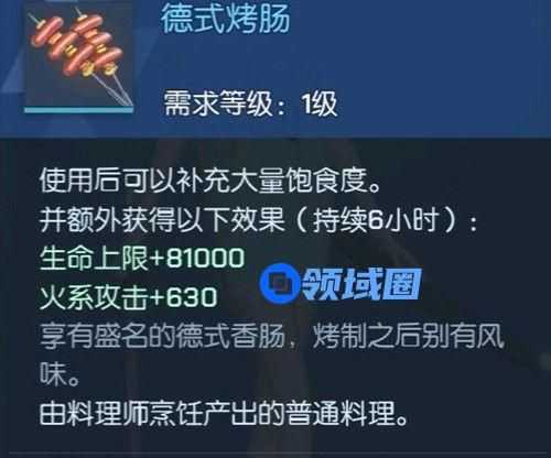 单从效果上看德式烤肠在各类食物中还是比较优秀的,回饱食多,buff持续时间长,还加火攻;部分玩家在看到了这一食品的图片后便认为无法购买的就一定是配方未公开的特殊自研,其实不然,目前德式烤肠的入手方式应该为绘梨衣友好度10级之后赠送给主角的回礼,数量有限,用完就没有了。