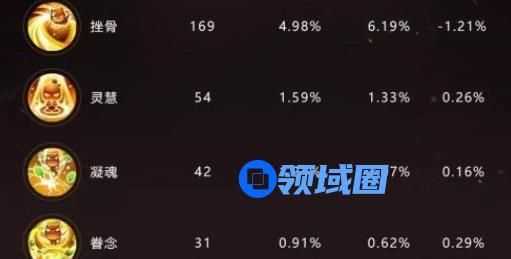 挫骨占比虽然不高,不过对于攻宠很实用,攻宠触发挫骨后会给目标附加重伤效果,可加快队伍的推进速度。灵慧适合法宠,灵慧宠物被击败后会对目标释放一次法术攻击。时机恰当的话,可以达到同归于尽的效果。