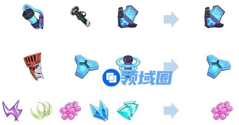3.4版本更新后,原有的3星通用进化材料将统一合并为超小型反应炉;原有的4星通用进化材料将统一合并为相转移镜面;原有的曜日进化材料将统一合并为双子绯樱意志。