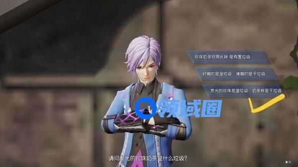 例如有一题是问发光的珍珠奶茶是什么垃圾?这道理答案是发光的珍珠是湿垃圾,奶茶杯是干垃圾。