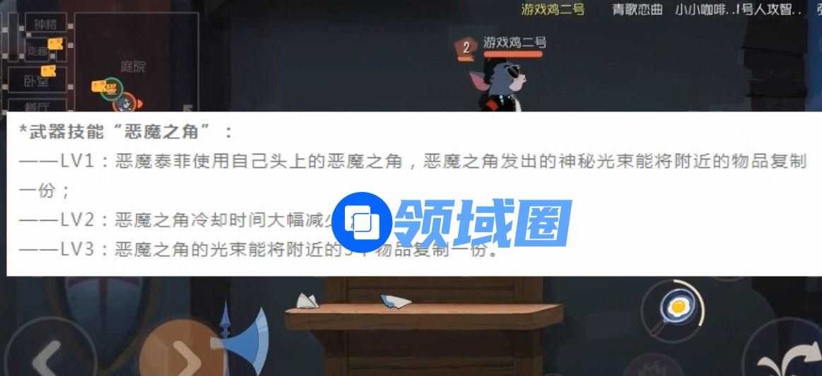 一级:恶魔泰菲使用自己头上的恶魔之角,恶魔之角发出的神秘光束能将附近的物品复制一份。