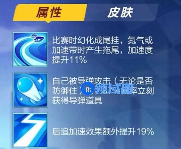 幼体满级:比赛时幻化成尾挂,氮气或加速带时产生拖尾,加速度提升11%