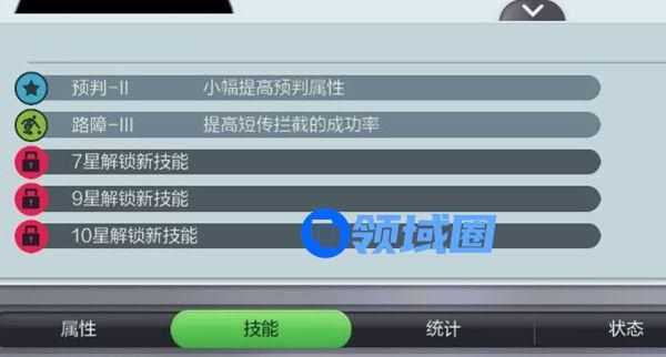 在属性之外,还应当看球员拥有的技能,技能会随着星级而解锁,10星(200%能力值)会解锁全部技能。