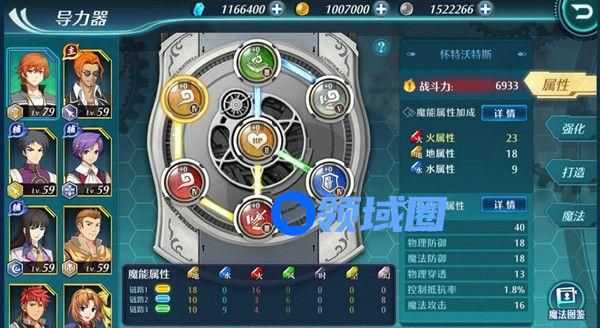 在导力器的界面里,点击角色或者伙伴,就能看到其现有的属性。
