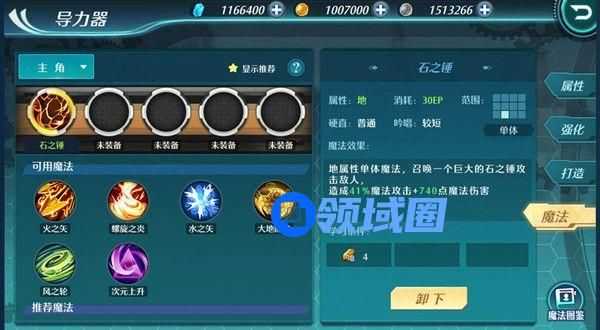 在魔法的界面,可以看到当前的可用魔法和推荐魔法。点击其中一个推荐魔法,可以看到魔法效果和学习条件。
