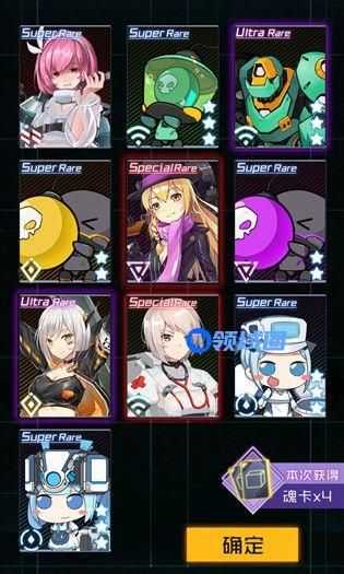 在内测期,游戏中的主要稀有度排序为金色MR(MillionRare)高于紫色UR(UltraRare)高于蓝色SR(SuperRare)