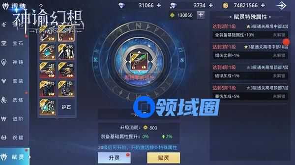 赋灵值还可以对装备进行升灵,升灵可以提示装备的基础属性,升灵无特殊条件限制,消耗对应的赋灵值即可直接获得对应属性!
