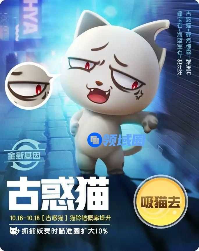 全新基因-【古惑猫】出现,增益效果为捉捕妖灵时瞄准圈扩大10%。活动期间,带新基因的猫铃铛出现概率提升,记得要及时入手哦!