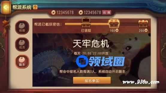 首个帮派活动“天牢危机”已经上线,天牢异动,大龙将逃!帮派中能人异士无数,哪几位大侠愿意挺身而出,化解危机?该活动为多人副本玩法,于每天20:00~22:00开放,且仅限于同帮派的玩家一起参与,每人各自报名,满3人即开启副本。